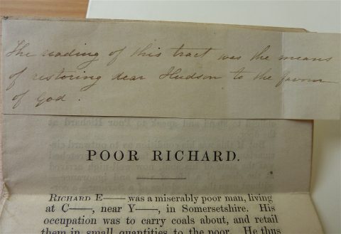 In June of 1849, Hudson, having leisure time, wandered into his father's study and came upon a little tract entitled, "Poor Richard." Taylor decided to read the story and skip the gospel message.